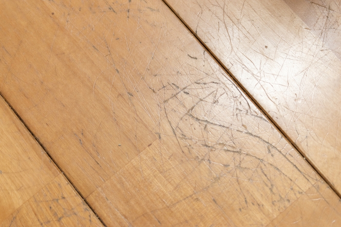 知らぬ間にキャスター付きの椅子で床に傷がついていることを発見。